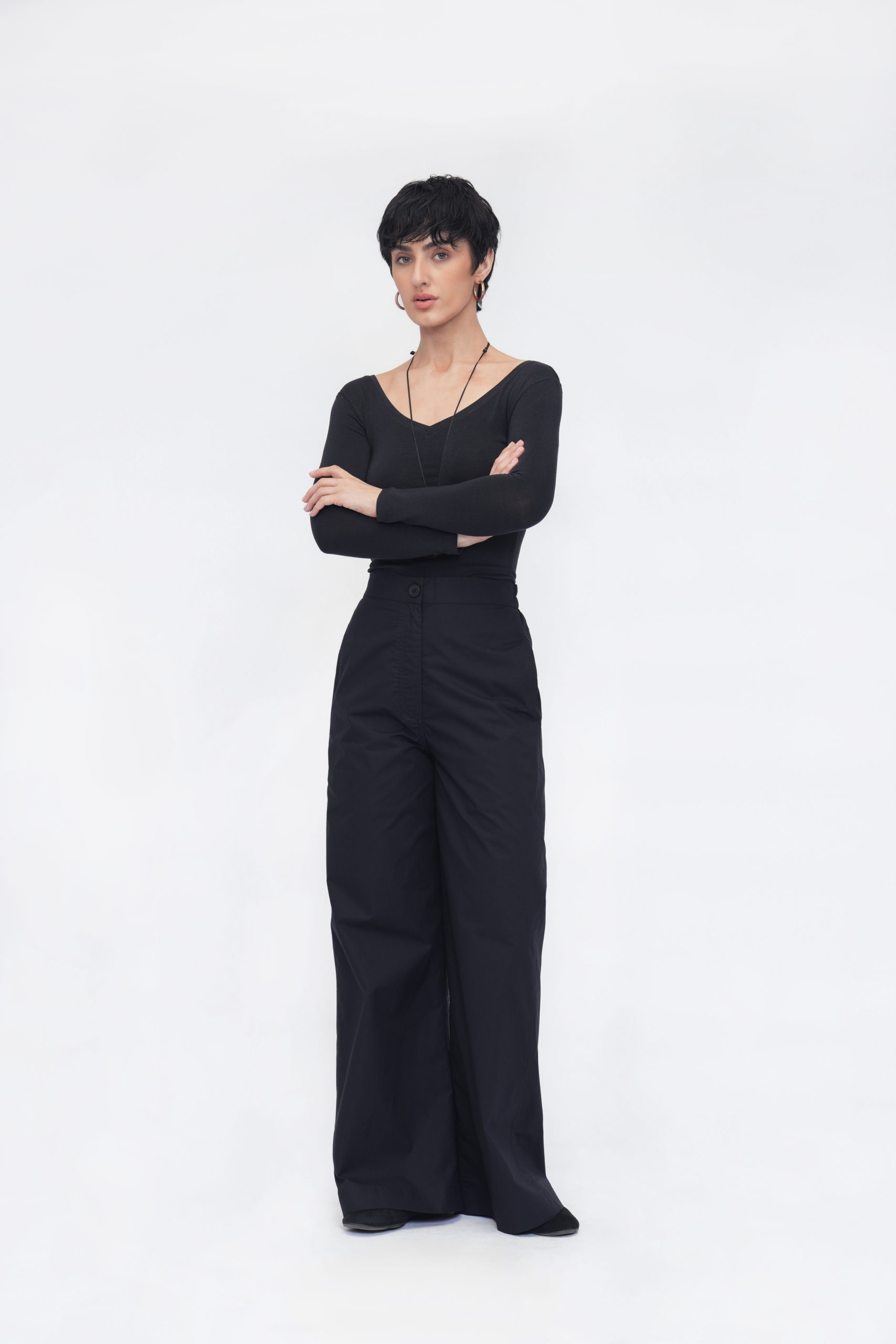 Straight-fit bottoms in crisp cotton poplin, featuring a half-band, half-elastic waistband for comfort, side seam pockets, and a button with fly zipper closure.A clean, breathable staple for warmer days.
